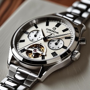 Dress automatic with exhibition caseback and applied indices. 50-hour power reserve and sapphire crystal.